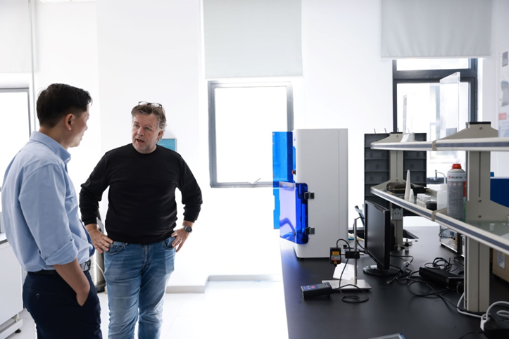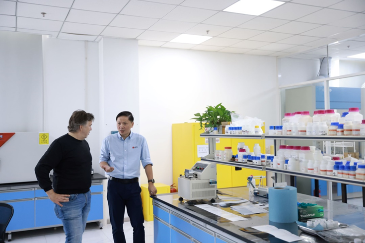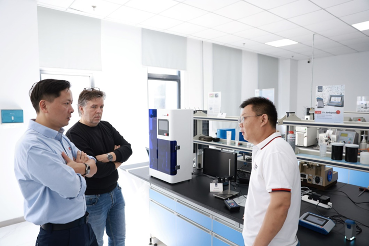 會(huì)后,一行人移步至二樓客戶體驗(yàn)中心 & 材料研發(fā)實(shí)驗(yàn)室進(jìn)行參觀與交流。