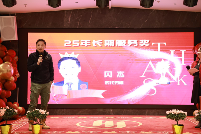 晚宴期間,公司給5-10-15-20-25年忠實(shí)服務(wù)的員工頒獎并贈送禮品,表彰他們多年如一日在各自工作崗位上的辛勤付出與卓越表現(xiàn),向他們表達(dá)誠摯的敬意與衷心的感謝。