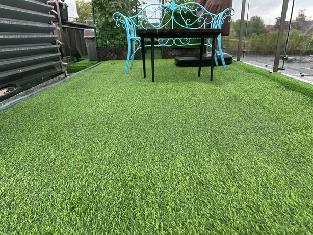僅僅三個月前,屋頂那抹刺眼的綠意還透著廉價的新鮮感。然而,南方盛夏烈日的暴曬成為它不堪承受的酷刑。高溫之下,單薄的基底開始扭曲變形,脆弱的草絲紛紛斷裂、卷曲。那些塑料碎片竟悄無聲息地粉化剝落,仿佛下了一場細碎的“綠雪”。每一步都踩在扎腳的塵埃上,熱浪中裹挾著劣質(zhì)塑料的刺鼻氣味。