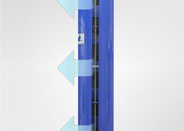 垂直獨(dú)立式風(fēng)管塔,內(nèi)置風(fēng)扇,用于水平空氣流動(dòng),配備AOP(O3+COOOC)技術(shù),防止病毒和細(xì)菌通過SOA氣溶膠傳播。